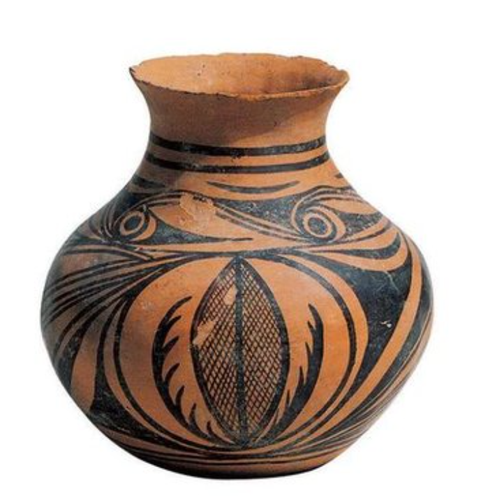 仰韶文化彩陶所涂的彩料,大致有赭、红、黑、白四种,因含不同的矿物质而定。